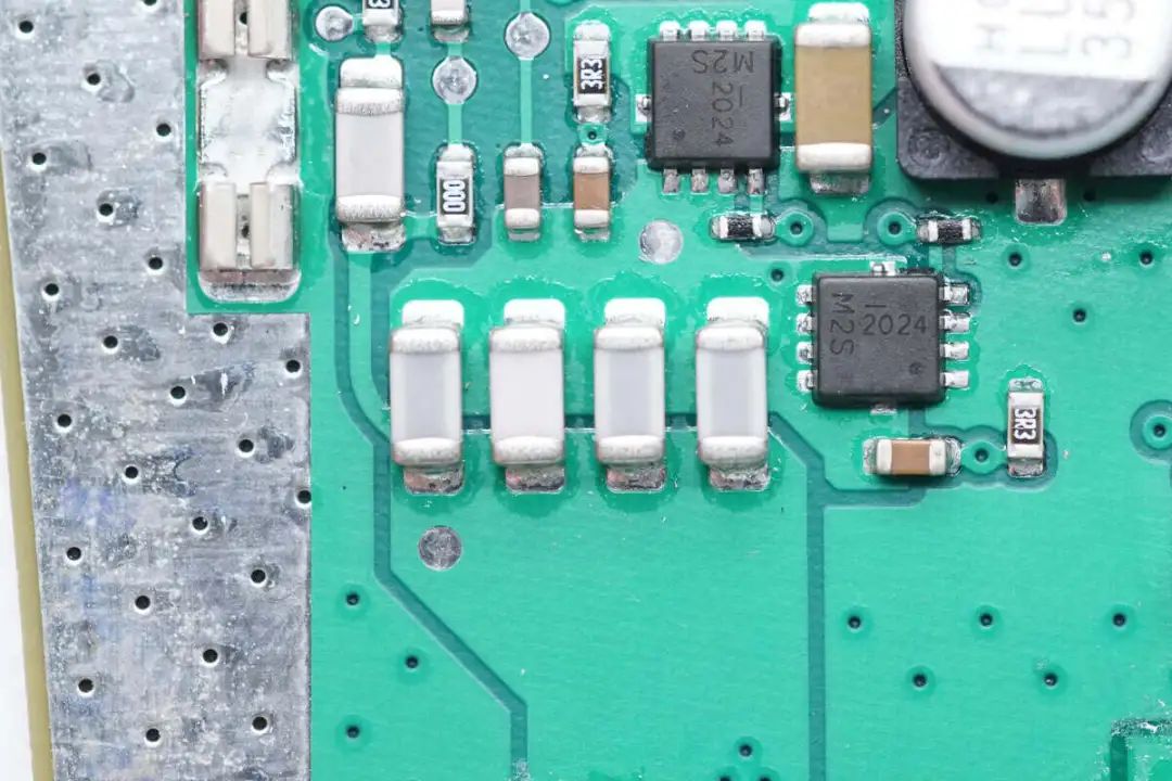 四颗并联的NPO谐振电容特写。