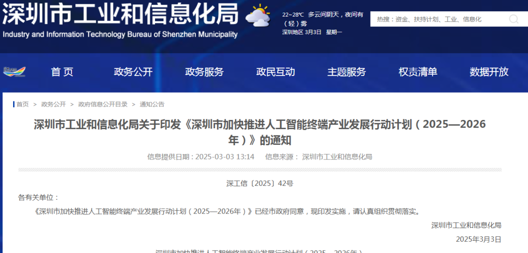值得一提的是,今日深圳市发布了《深圳市加快推进人工智能终端产业发展行动计划(2025—2026年)》、《深圳市具身智能机器人技术创新与产业发展行动计划(2025—2027年)》两份通知。