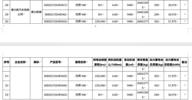 这款车型搭载 51.975kWh 和 36.019kWh 两种容量的三元锂离子电池,对应纯电续航为 235/240km 和 161km,油耗均为 6.60L / 100km。