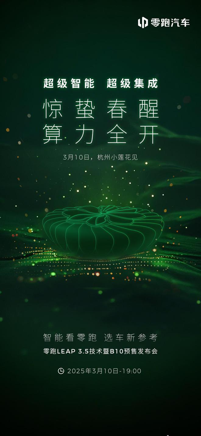 IT之家 3 月 5 日消息,零跑 B 系列首款车型要来了,零跑 LEAP3.5 技术暨 B10 预售发布会官宣 3 月 10 日 19:00 在浙江杭州举行。
