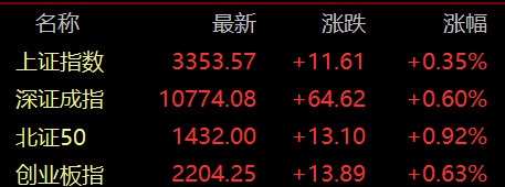沪指高开0.35%,深成指涨0.6%,创业板指涨0.63%。