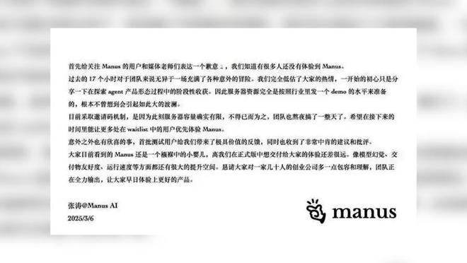 然而,面对市场的热情,Monica团队保持了冷静和理性。张涛在回应邀请码风波时表示,公司从未开设任何付费获取邀请码的渠道,内测期间系统容量有限,将优先保障现有用户的核心体验。他坦言,目前的Manus还只是一个襁褓中的婴儿,离正式版中想交付给用户的体验还差很远。