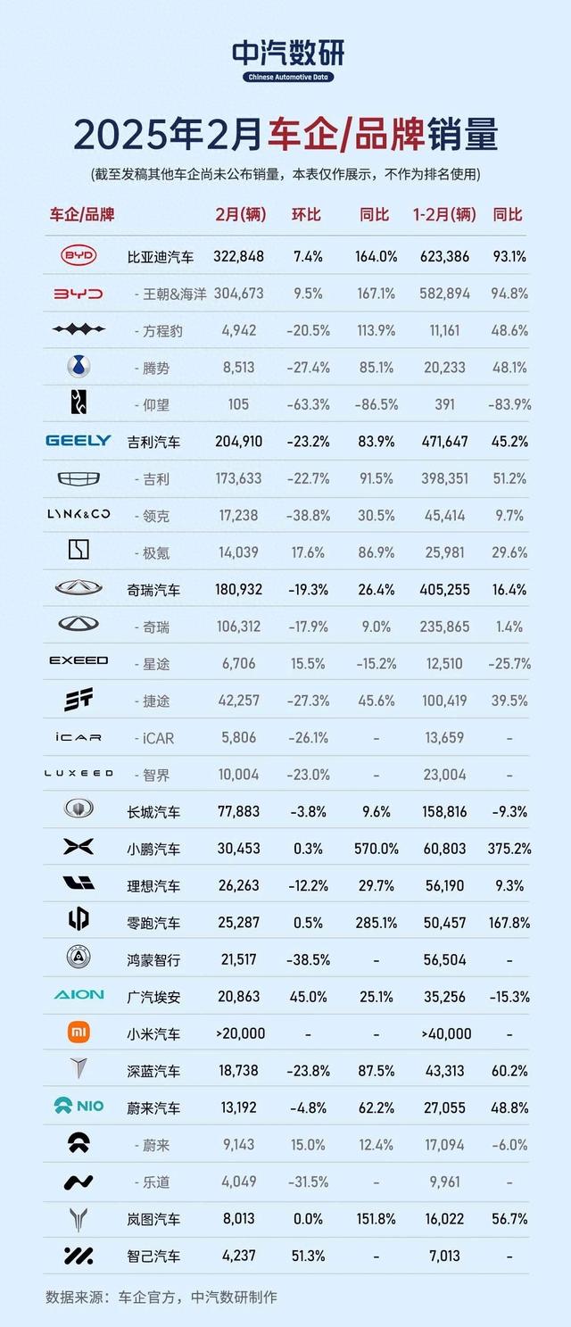 从 2 月销量数据来看,比亚迪的智能驾驶产品无疑已成功赢得更多消费者青睐。这不仅是产品竞争力的增强,新能源“一哥“的号召力,也使得2025年成为全民智驾的起点。