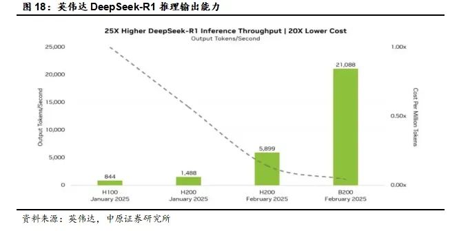 通过DeepSeek的测算,其每节点(8张H800的AI服务器)的平均吞吐输出为8575 Tokens/s,而英伟达在2月25日公布的8张H200和B200 节点的R1推理吞吐分别为5899 Tokens/s和21088 Tokens/s。这意味着DeepSeek通过这套算法优化,在显存(80GB vs 141GB)和带宽(2TB/s vs 4.8TB/s)都远不及H200的情况下,实现了151%的性能超越。