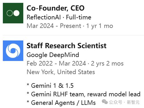 Misha Laskin于2022年加入DeepMind担任研究科学家,负责谷歌关键LLM项目Gemini的RLHF和奖励模型团队。