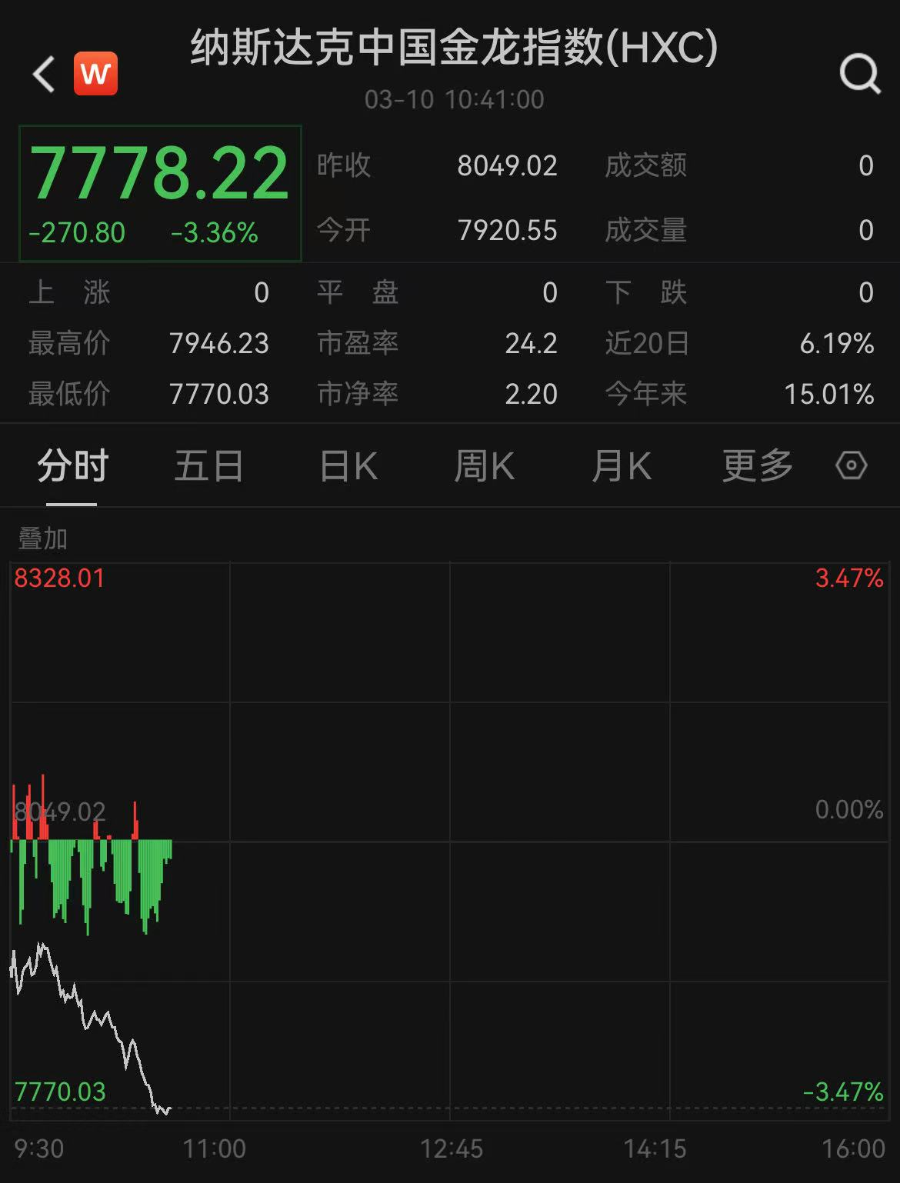 3月10日,美股三大指数集体大幅低开,截至发稿,道指跌近1%,纳指跌超3%,标普500指数跌近2%。