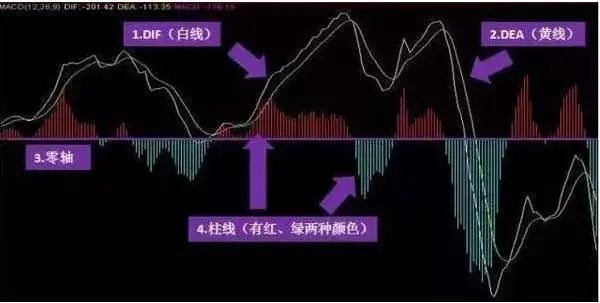 它由长期均线DEA,短期均线DIF,红色能量柱(多头),绿色能量柱(空头)、0轴(多空分界线)五部分组成。它是利用短期均线DIF与长期均线DEA交叉作为信号。MACD指标所产生的交叉信号比较迟钝,但作为制定相应交易策略使用,效果却比较好。