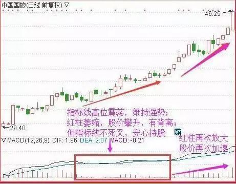 只要MACD指标走势正常,红绿柱的短暂背离不用恐慌,后续股价顺应MACD突变,红绿柱会跟随放大,很可能是二次买点。股价缓慢震荡攀升,MACD指标维持震荡,并未死叉;后续红柱再次放大,股价再度加速上攻!