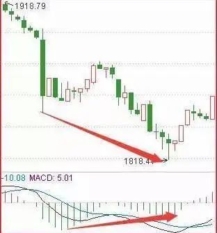 股价创新低,MACD指标线不创新低甚至逐步抬升,这是底背离;反之是顶背离。