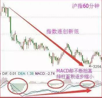 股价创新低,绿柱的长度却逐步缩短,这是底背离;反之是顶背离。