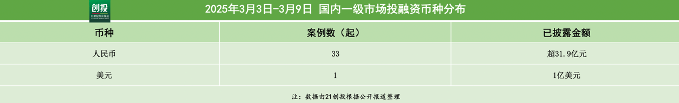 21创投不完全统计,3月3日—3月9日,报告日期内国内一级市场发生融资事件42起。其中,有34笔融资披露了融资金额和币种信息,总规模约合人民币38.9亿元。