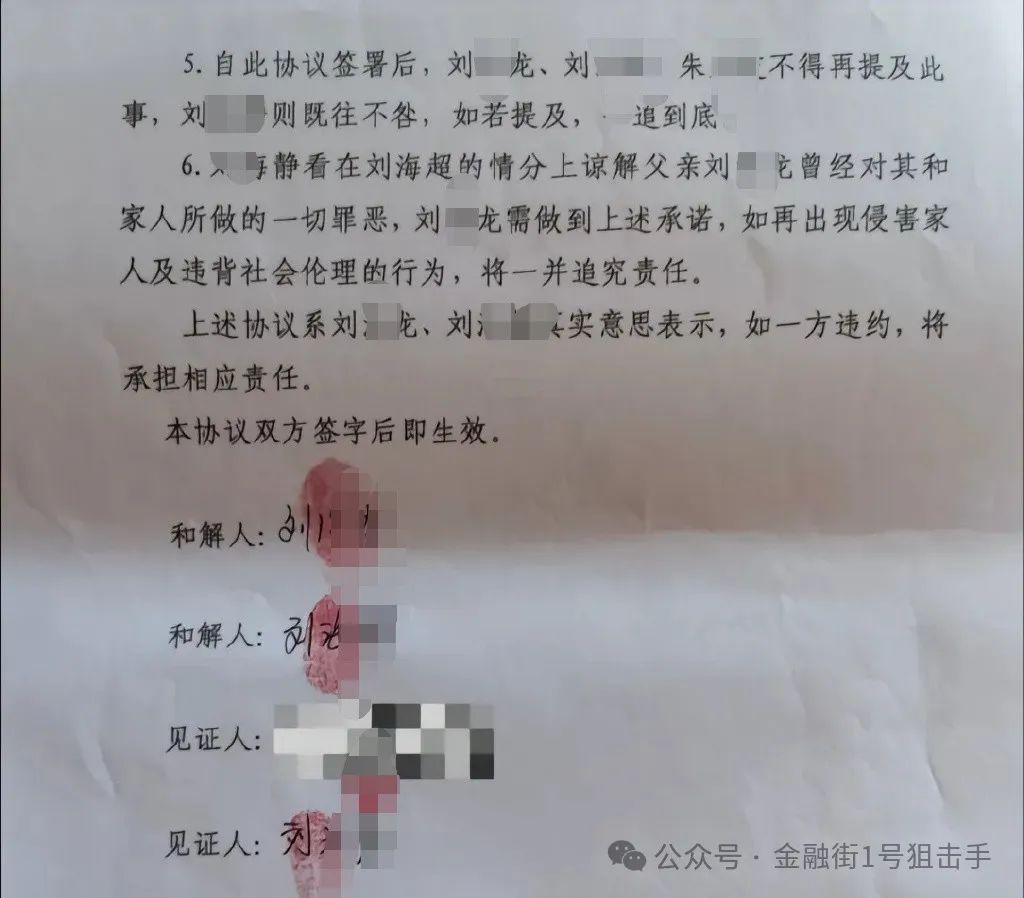 3月12日,受害者小刘在社交平台公布了一份和生父签订的和解协议书,双方就小刘控告生父强奸、猥亵、重婚罪一案达成协议:刘某龙不再提及此事,小刘既往不咎。小刘强调和解是为了弟弟和梁某某,与强奸猥亵一案无关。