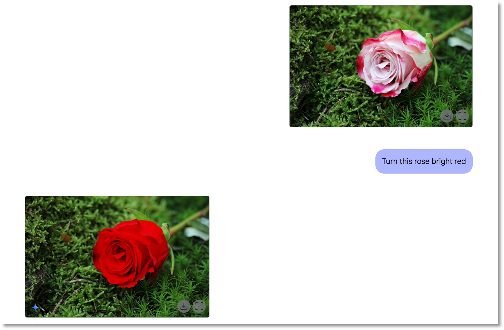 记者随即向Gemini 2.0 Flash发送了一张玫瑰的图片,要求模型将玫瑰的颜色改成鲜红色。