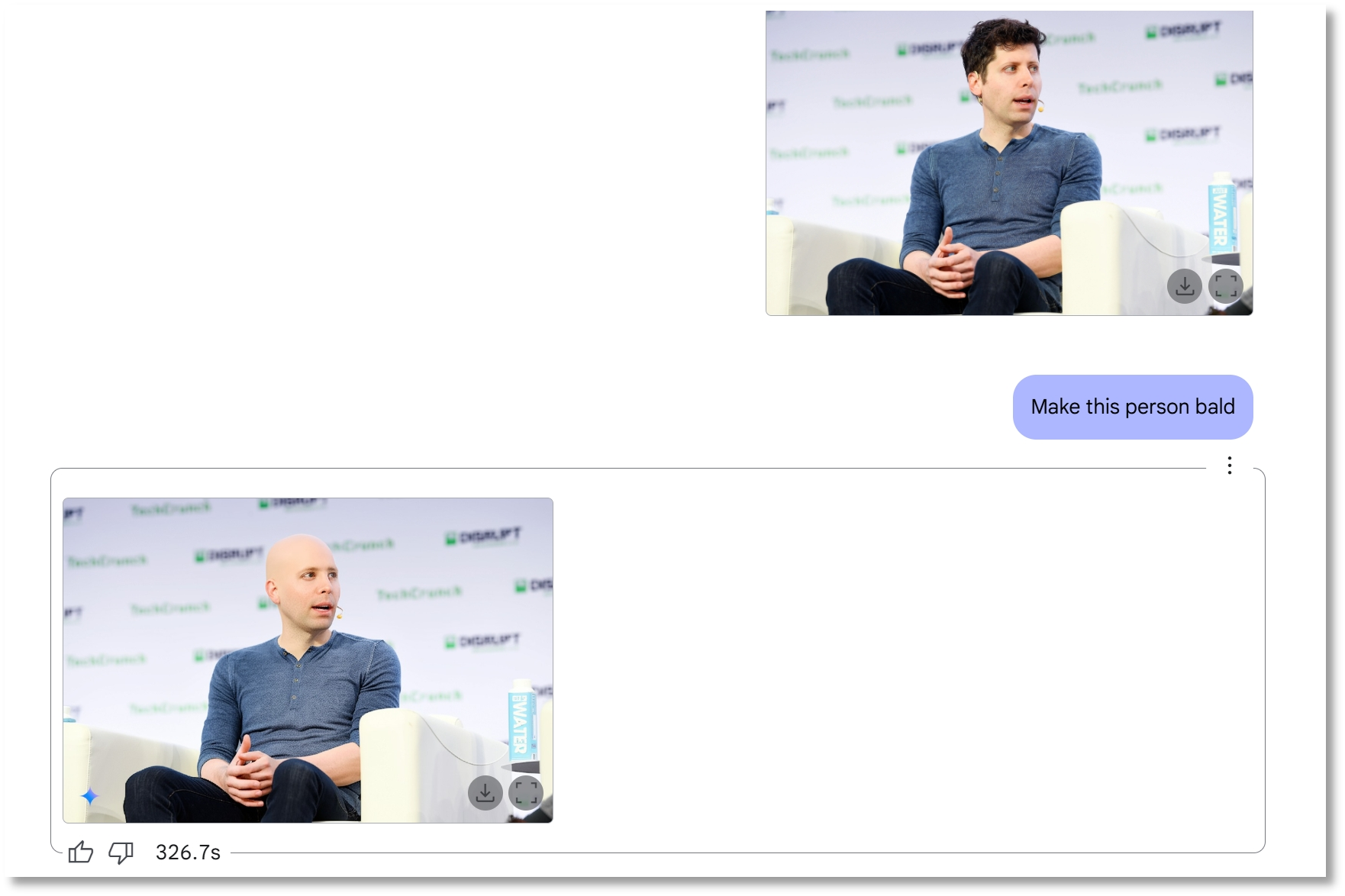 首先,记者发送了OpenAI首席执行官山姆·奥尔特曼出席活动的一张照片,希望Gemini 2.0 Flash去掉图片中的部分元素——头发。