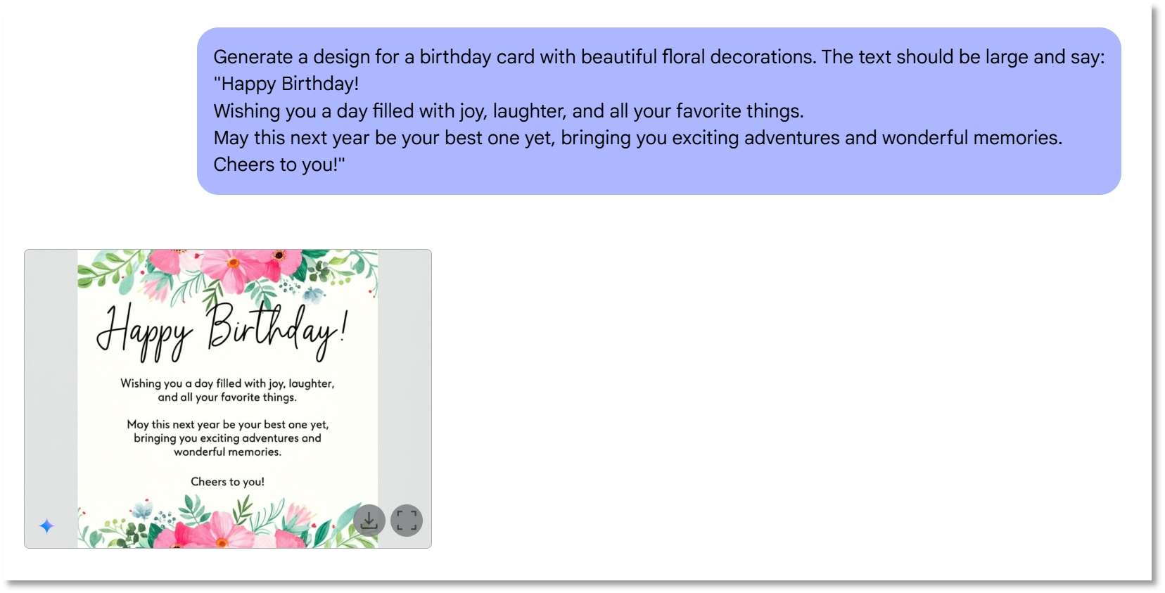 记者向Gemini 2.0 Flash下达指令,要求其设计一张生日贺卡,并明确规定了贺卡上需呈现的文字祝福内容。