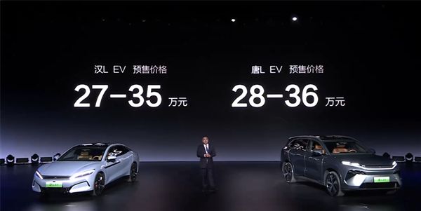 3月17日晚,在超级e平台技术发布暨汉L唐L预售发布会上,比亚迪汉L、唐L正式预售,其中,汉L EV预售价格为27-35万元;唐L EV预售价格为28-36万元。