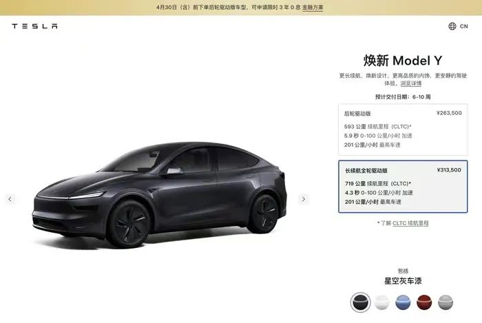 3月18日,特斯拉针对焕新Model Y和Model 3同时推出了重磅政策:焕新Model Y长续航版涨价1万元,后轮驱动版推出3年0息和5年超低息政策,月供低至3808元。3月31日前,Model 3全系8000元现车保险补贴+Model 3后轮驱动版/长续航版5年0息政策,月供低至2460元。