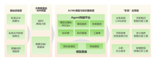 四层架构紧密协同,共同构成了天职国际在人工智能应用方面的技术体系,为业务人员和客户提供专业赋能。