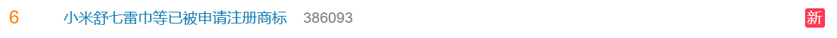 今日,#小米su吸# #小米舒七雷巾等已被申请注册商标#等话题持续霸榜热搜。