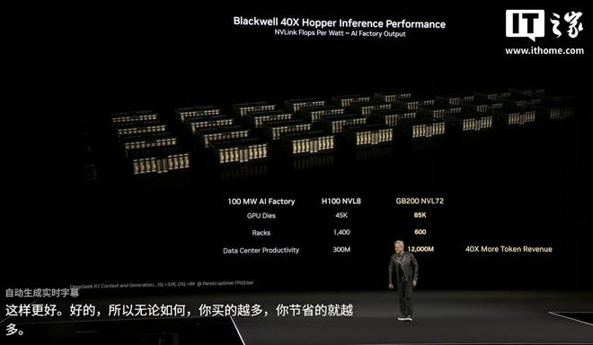 IT之家注意到,黄仁勋还打趣道,有了上述最新技术加持,搭建 AI 工厂的厂商“买得越多、省得越多”,总而言之就是掏钱吧。