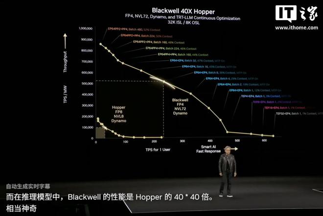 而在推理模型中,Blackwell 的性能是 Hopper 的 40 倍。