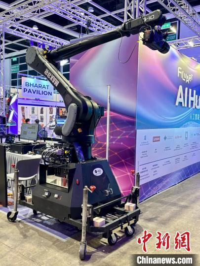 会场内另一“人气王”是两台可用于虚拟拍摄的大型智能机械臂,这是由天津基卡机器人技术有限公司带来的Motion Control Solution(运动控制解决方案)。该公司海外销售总监黄耀辉告诉记者,运动控制拍摄技术在中国内地及海外发展较成熟,但香港尚未普及。