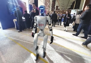 三湘都市报3月19日讯 前行、后退,主动避让障碍物转弯绕行,跟人挥手打招呼、握手……3月19日,湖南省“智赋万企”数智化转型大会在长沙举行,现场一个人形机器人的表现吸引了众多与会者的关注。除了机器人,还有两条呆萌可爱的“机器狗”也受到大家的喜爱,纷纷与之互动。