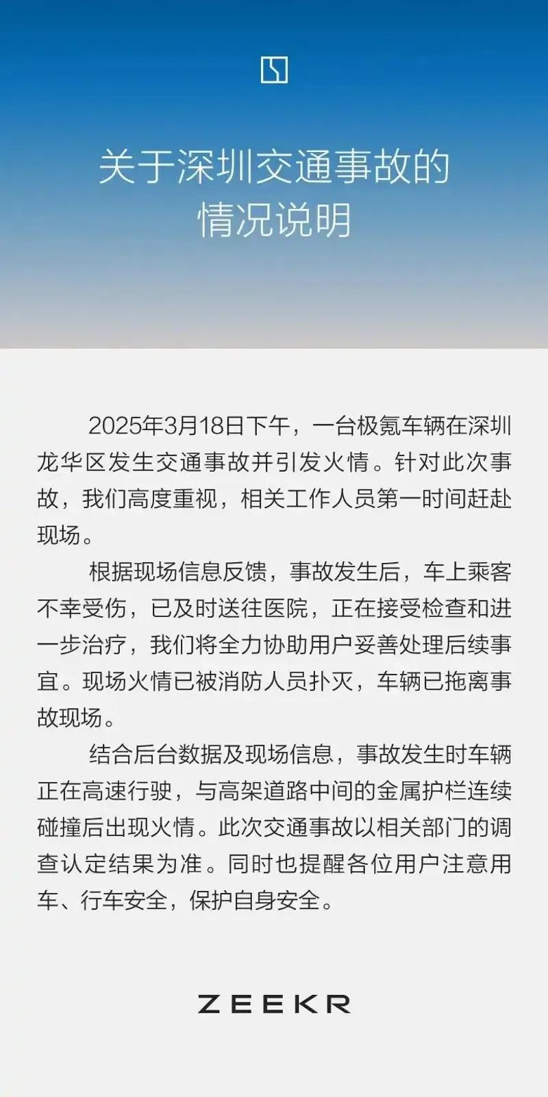 汽车事件四:极氪发布深圳交通事故情况说明