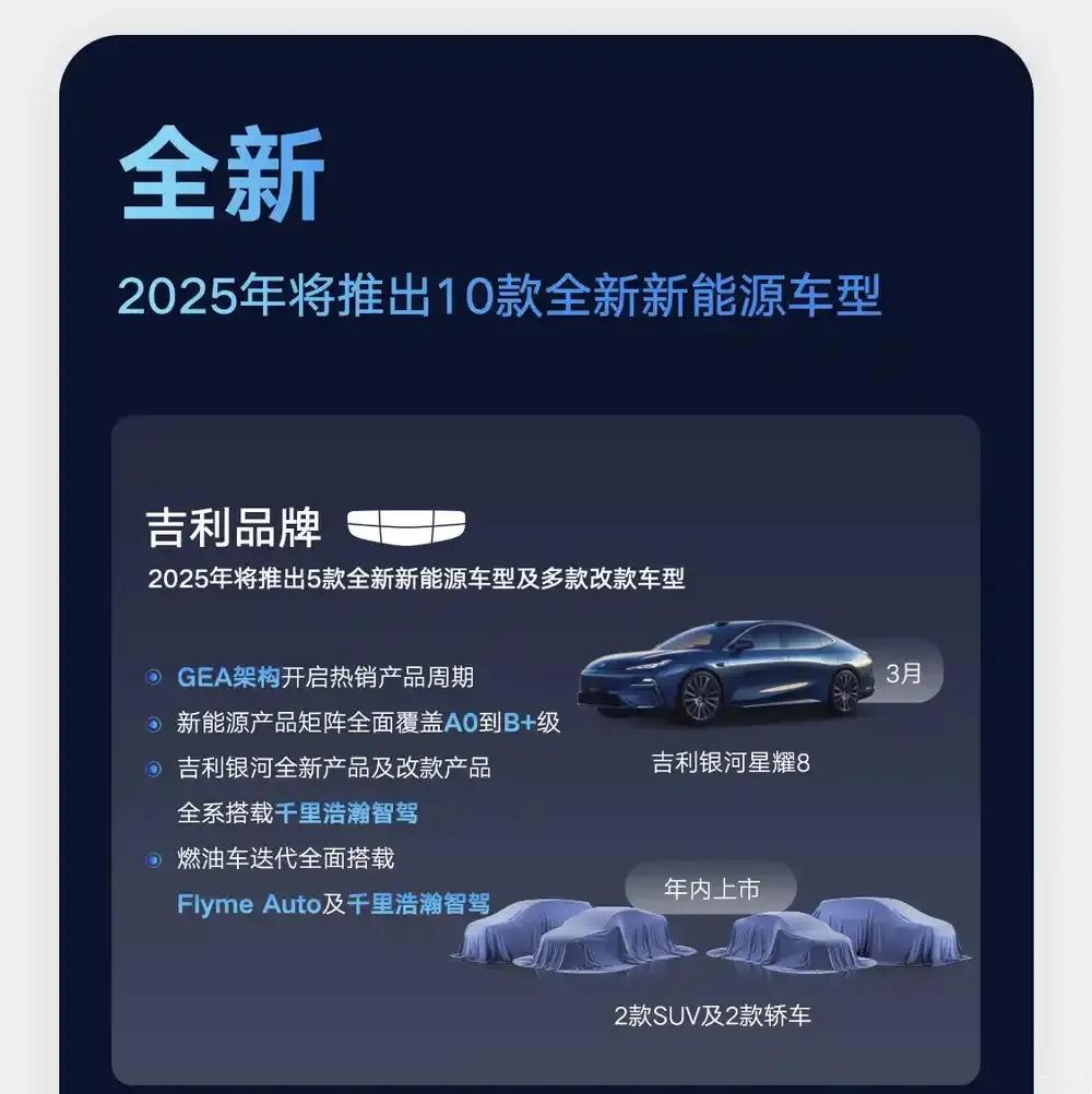 日前,吉利汽车公布2024年财报。2024年吉利总收入首次突破2400亿元,达到2402亿,同比增长34%,创历史新高;全年归母净利润166亿元,同比增长213%;扣非后归母净利润85亿元,同比增长52%,经营盈利能力显著提升。2024年吉利汽车毛利总额提升至382亿元,毛利率达15.9%;净现金水平上升40%至398亿元,现金储备充裕。此外,吉利集团2025年将推出10款全新新能源车型。