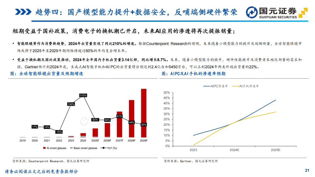 4)趋势四:国产模型能力提升+数据安全,反哺端侧硬件繁荣。