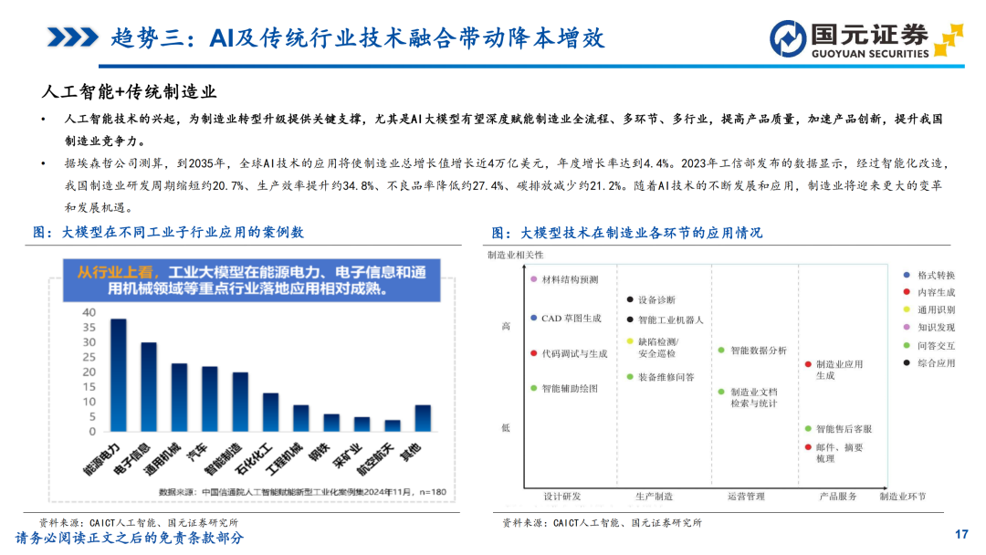 3)趋势三:AI及传统行业技术融合带动行业降本提效;