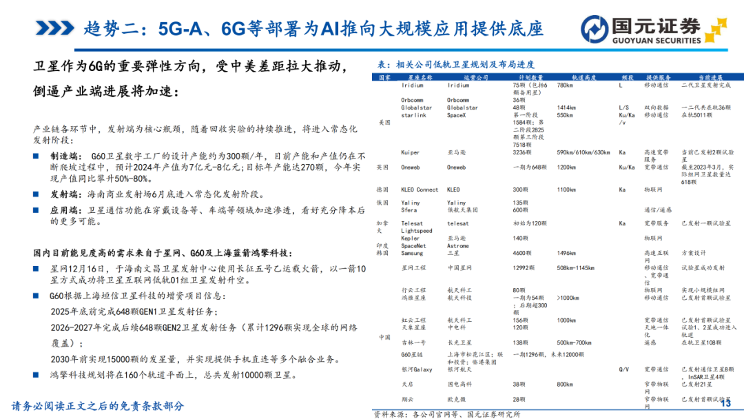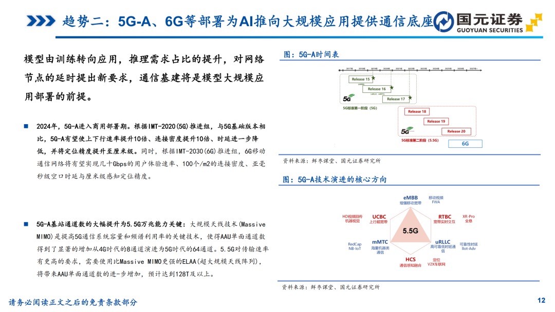 2)趋势二:5G-A、6G等商业化部署为AI推向大规模应用提供底座;