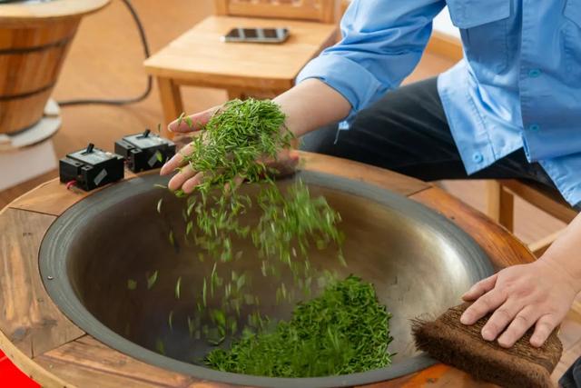无人机掠过斗山茶田,将层层绿浪定格成水墨长卷;制茶车间,散发着悠悠茶香,摊晾、杀青、回潮、整型、烘干、辉炒……据说,数万个嫩芽才能炒出一斤太湖翠竹,真是实实在在的“功夫茶”。