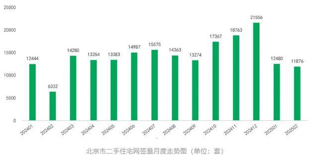 北京全市二手房累计网签达到了11876套,这一成交量相比1月份的12480套环比下调了4.8%,但相比2024年2月的6332套大涨了87.6%。