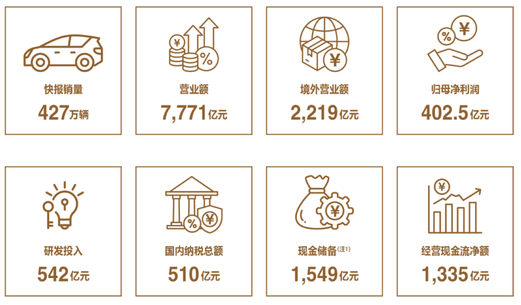3月24日,比亚迪股份有限公司(比亚迪,002594.SZ;01211.HK)公告,公司2024年实现营业收入7771.02亿元,同比增长29.02%;2024年净利润402.54亿元,同比增长34%;基本每股收益13.84元。拟向全体股东每10股派发现金红利39.74元(含税),现金分红金额约120.77亿元。