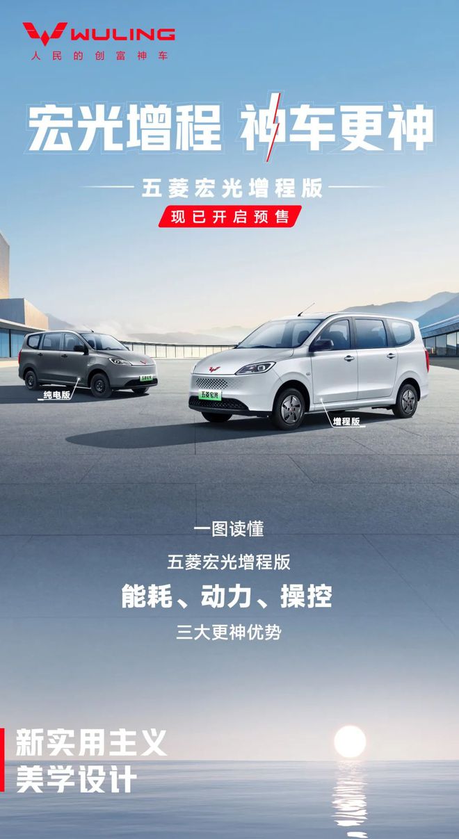 IT之家 3 月 25 日消息,五菱宏光增程版汽车首搭五菱红标增程技术,共推出实用型-5 座、标准型-5 座和舒适型-7 座 3 个版本,官方预售价 6.88 万元-7.38 万元。