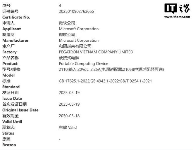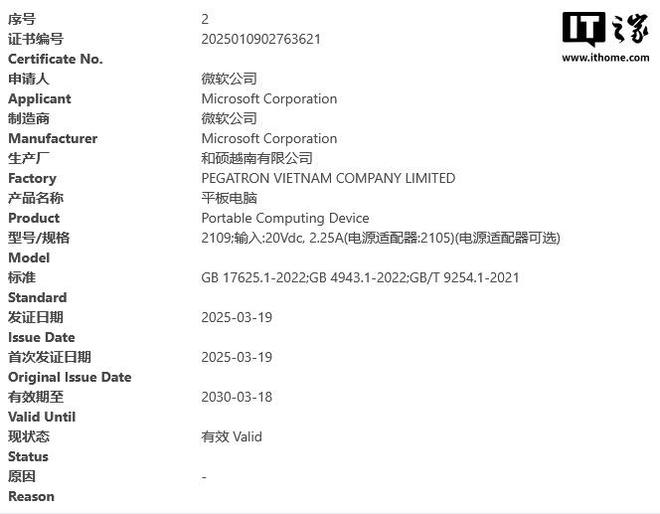 IT之家查询相关资料,“2109”和“2110”应该是“迷你版” Surface Pro,由和硕越南有限公司和名硕电脑(苏州)有限公司两家公司生产。