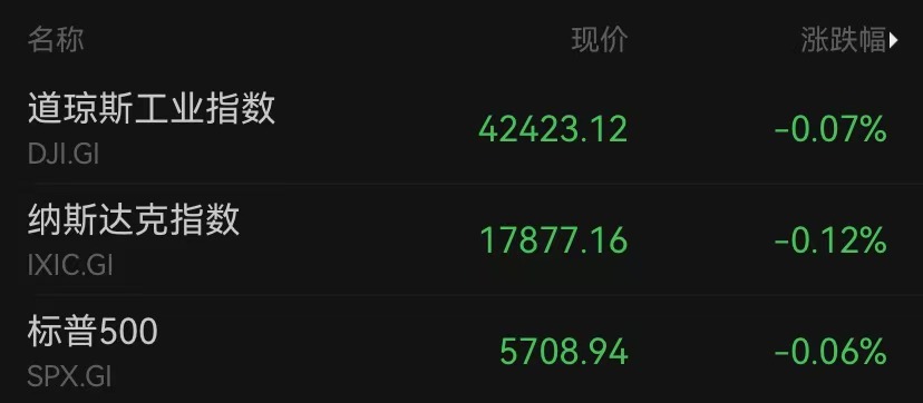 北京时间周四晚间,美国经济数据公布后,美股三大指数集体低开,截至22:00左右,道指跌0.07%,纳指跌0.12%,标普500指数跌0.06%。