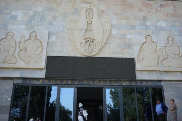 在撒马尔罕期间,我参观了阿夫罗西亚布博物馆。该博物馆被称为最能体现“东西方文明十字路口”的地方之一。博物馆主要展出的是阿夫拉西亚布城考古发掘的文物,其中包括出土的壁画,这些壁画描绘了唐朝、突厥、朝鲜等使臣来访的景象,记录了古代丝绸之路的故事与痕迹。
