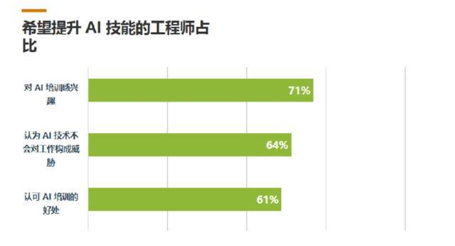 除了提高生产力外,投资AI的企业还能在招聘方面受益。全球80%的受访工程师表示希望为重视AI集成的企业工作。