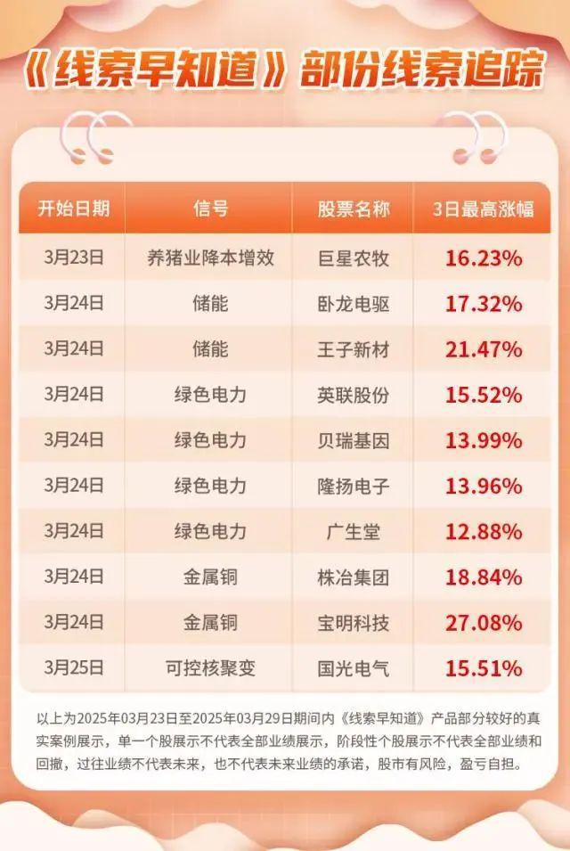 (以上内容及观点为越声理财《线索早知道》提供,仅供参考,不构成建议,投资者据此操作,风险自担)