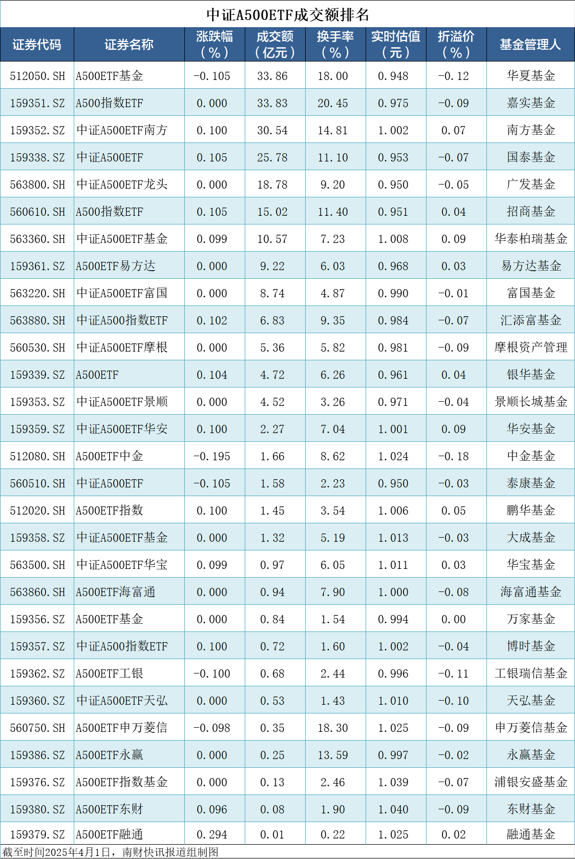 成交额方面,29只中证A500ETF合计221.54亿元,较上日缩量约46.87亿元。华夏A500ETF基金成交额33.86亿元,继续排名第一。