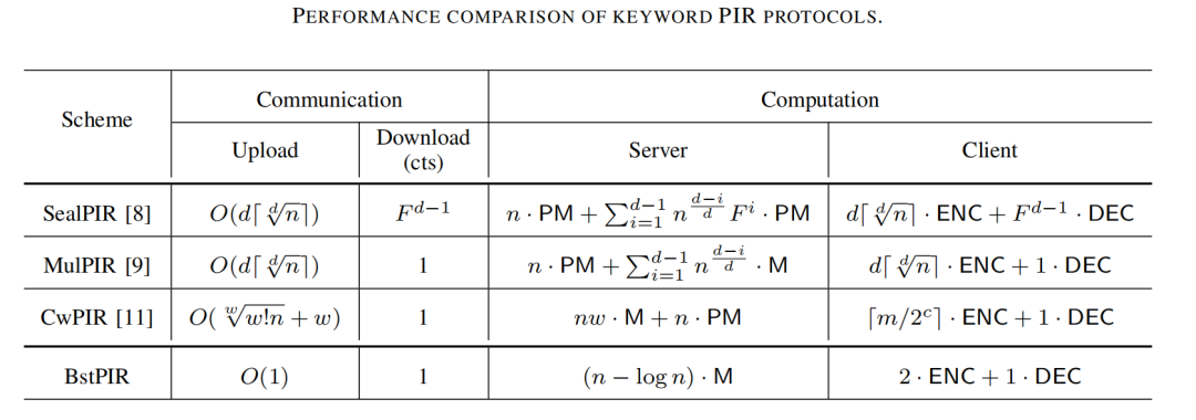 论文基于格密码与全同态加密算法,创新性地构建了一个三路同态比较复用器;同时利用该算法对具有二叉搜索树结构的数据库进行盲化的路径选择,并同态提取检索结果。相比于同类工作,BstPIR为数据提供商实现了最优的计算和通信开销,为算力资源提供商实现了具有竞争力的性能,在不引入额外开销的情况下还支持数据库的隐私保护,有助于实现更加安全、高效、可靠的数据存储、流通与使用。