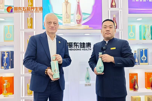 就在3月24日,布鲁塞尔国际酒类大奖赛主席卜度安·哈弗莅临振东五和养生酒展位考察,并与五和养生酒公司总经理郭瑞杰深入交流。在现场品鉴后,卜度安·哈弗对产品给予高度评价,认可其品质与健康功效的理念,并对品牌未来走向国际表示期待。