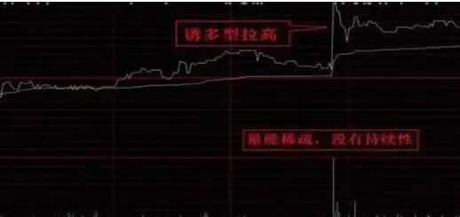 诱多型拉高是一种典型的诱多行为,量能稀疏放大没有延续性,股价冲高回落类似这样的股票往往进去隔日就会低开低走。