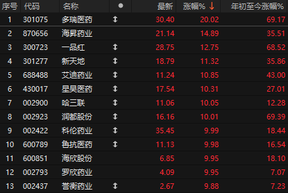 先来说医药,其实港股创新药早就走强了,比如歌礼制药已经涨十倍了,A股医药板块反而相对滞后。今天医药板块掀起涨停潮,多瑞医药、鲁抗医药、科伦药业、和元生物等多股涨停。