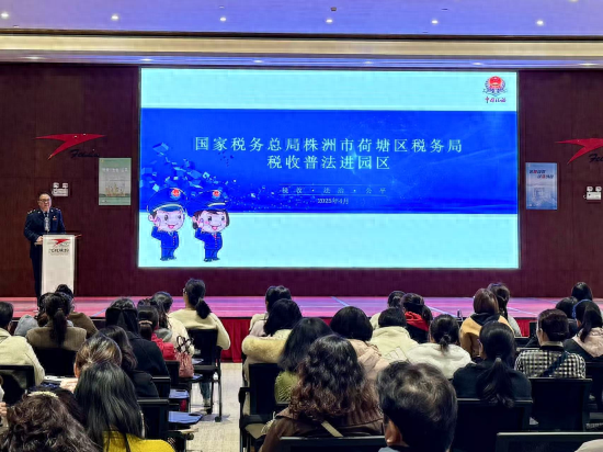 4月1日,国家税务总局株洲市荷塘区税务局紧扣第34个全国税收宣传月“税收•法治•公平”主题,组织业务骨干走进园区,在诚信纳税企业代表株洲飞鹿高新材料技术股份有限公司开展税收普法活动,荷塘区税务局党委书记、局长杨文明致辞,邀请辖区100多家重点税源企业、高新技术企业和中小微企业代表参加。