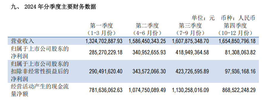 分季度来看,公司在第四季度压力较大,报告显示,该季度公司营业收入为16.55亿元,但归母净利润仅为8130.81万元。