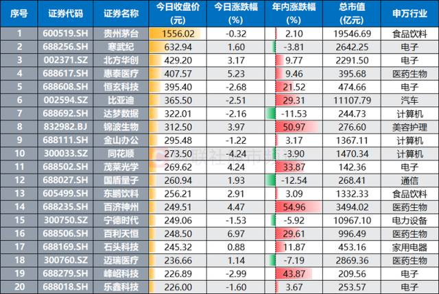 今年以来,百济神州股价持续震荡走高,并在2月28日一度录得年内最高价248元,彼时,其年涨幅48.1%,年内最大涨幅64.1%。在后续历经近1个月的调整和修复后,百济神州今日续刷年内高点,盘中股价最高达251.26元。目前,其股价报收于249.51元,为时下第二高股价的医药生物股,仅次于惠泰医疗(407.57元),且在整个A股中位居第14位。