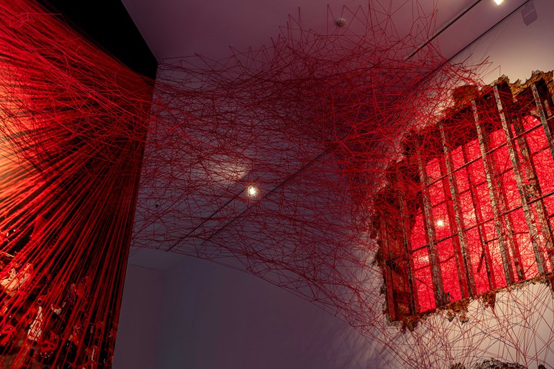 凭借彩色毛线、绳索和丝线创作的迷宫式装置作品,盐田千春在全球艺术市场备受瞩目。红线是她作品中的核心元素,象征着血液,也象征着生命本身。她用打结、缠绕的方式构建出一张巨型的“网”,既是充满希望的幻想——暗示地球上所有生命之间无形的联系,也是难以逾越的残酷障碍,迫使观众重新审视自己在空间中的行动方式。